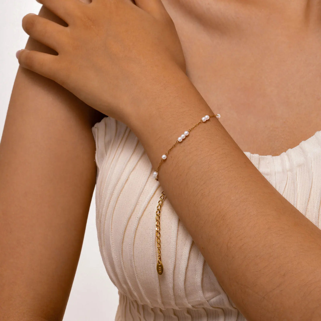 Stainless Steel Imitation Pearl Chain Bracelet for Women Fashion Temperament Gold Color Chain Bracelets Hand Ornament Jewelry