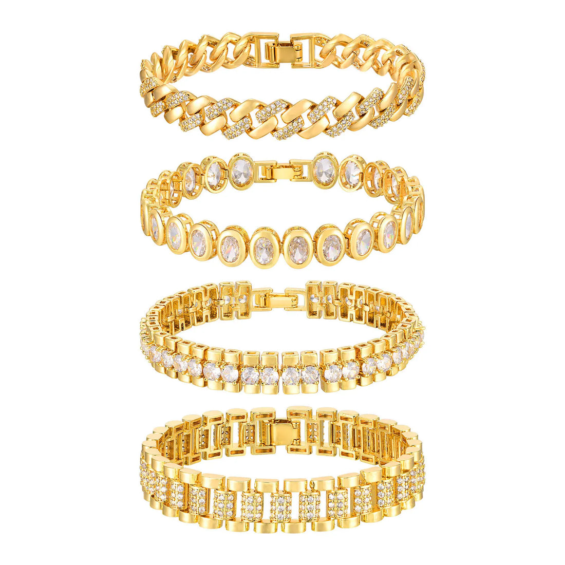 Tennis Bracelet, CZ Cubic Zirconia Rhinestone Chain Bracelet, Chunky Wide Hip Hop Jewelry