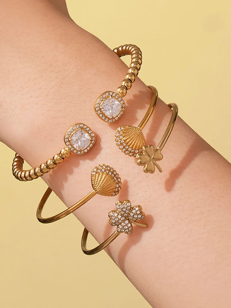 Nivora Minimalist Cubic Zirconia Charm Cuff Bracelet for Women Stainless Steel Gold Plated Wedding Banquet Charm Bangles Jewelry