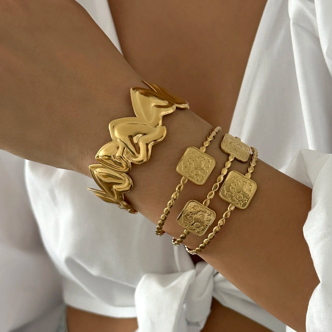 SPECIFICATIONSBracelets Type: BanglesBrand Name: MarkaChoice: yesCompatibility: All CompatibleDelivery: Within 48 HoursElectroplate: PVD Real Gold PlatedFine...