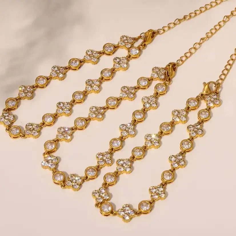 Nivora 16CM Stainless Steel Wrist Chain Bracelets Bling Cubic Zircon Flower Charm Bracelets For Women Golden Waterproof Jewelry