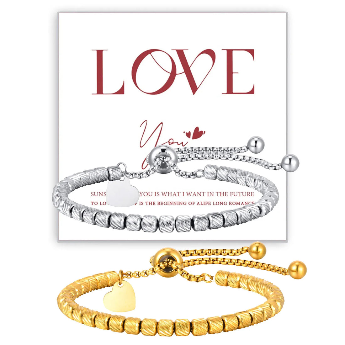 Beaded Bolo Bracelets, Tarnish Free Gold Plated Stainless Steel Adjustable,relationship Bracelets for His and Her Couple Jewelry