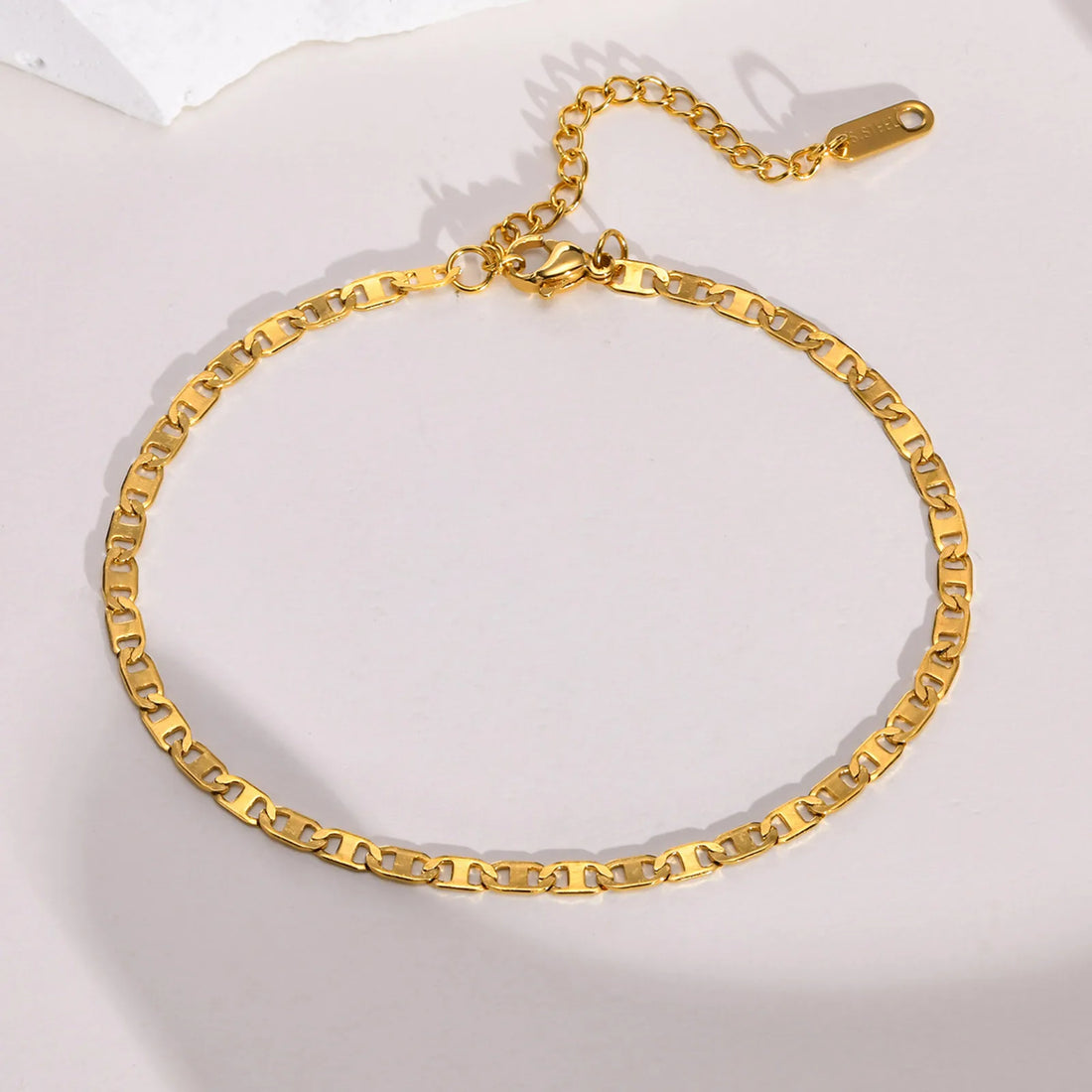 Women's Trendy Stylish Stamped Rectangle Charm Chain Bracelets, Gold Color Paperclip Links Wristband Jewelry