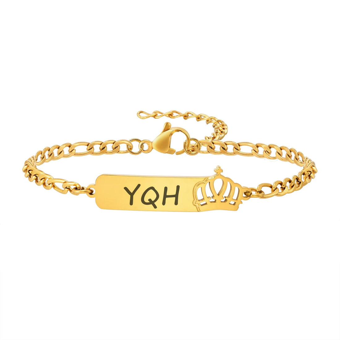 Stainless Steel Hollow Crown Curved 3-To-1 Nk Chain Custom Bracelet,Name Date personalization Engrave Bracelets for Women