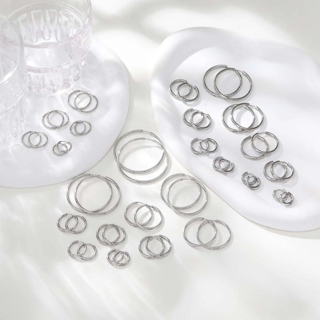 Stainless Steel Circle Hoop Earrings for Women,Minimalist Silver Color Simple Hoops Ear Piercing Round Earrings,Fashion Jewelry