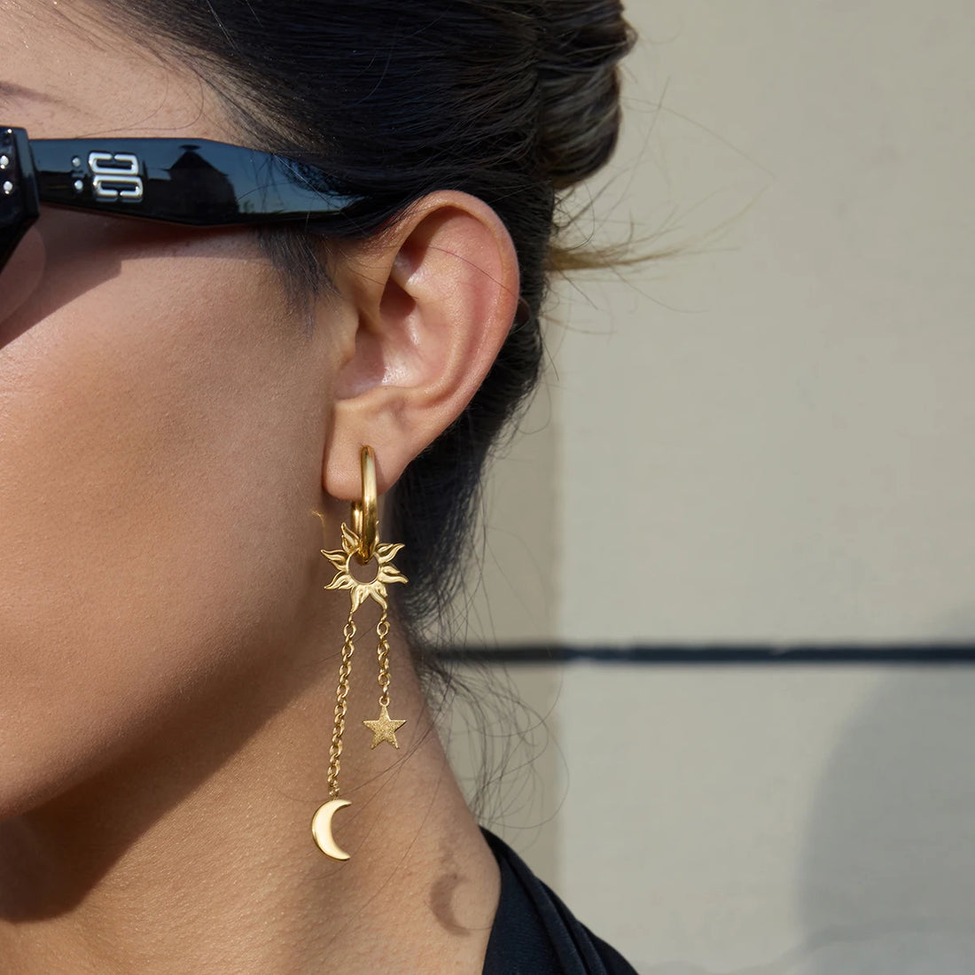 Uworld Fashion 18K Gold Color Plated Stainless Steel Rhinestone Moon Pendant Tassel Earrings Star Sun Earrings Women's Jewelry