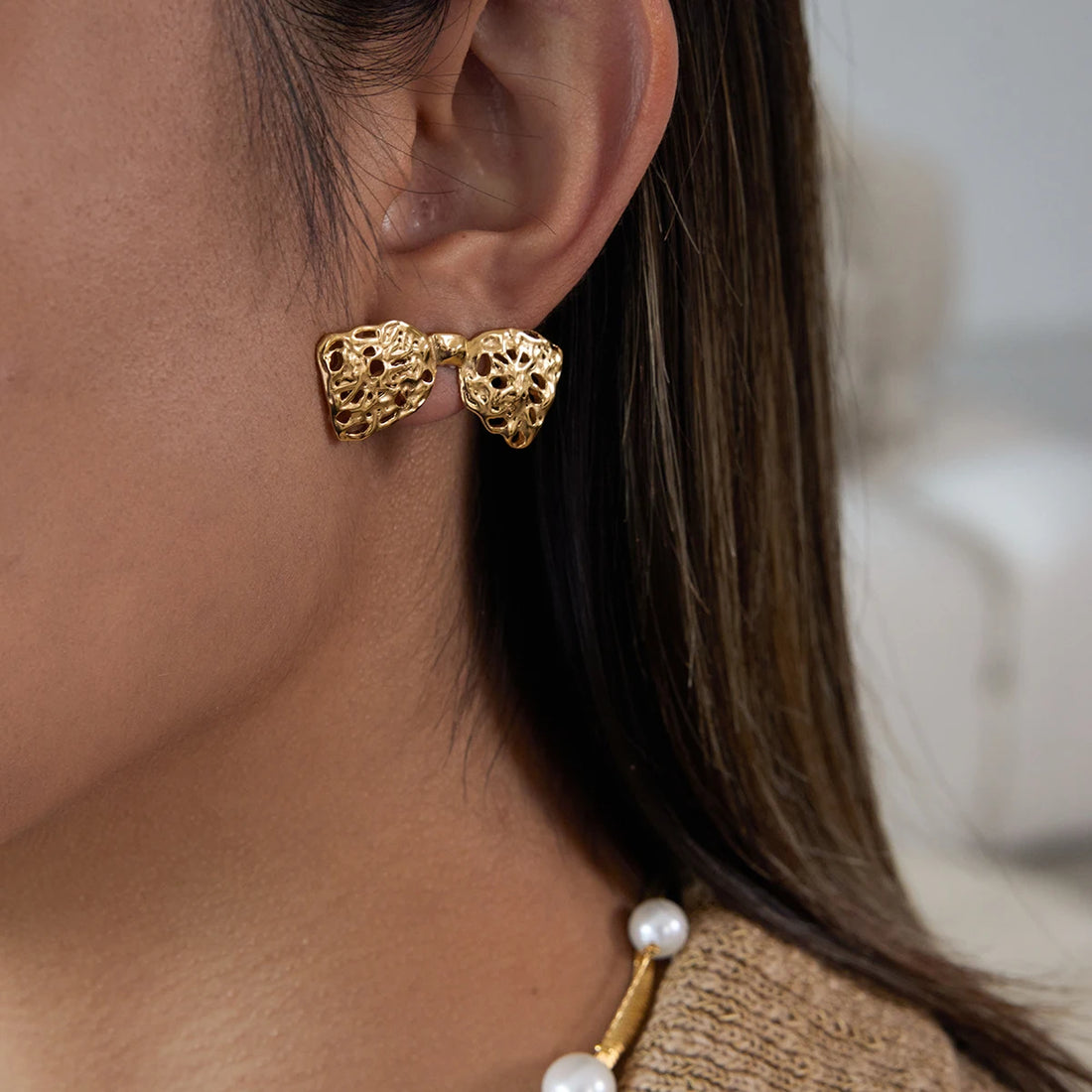 Uworld Classic Vintage 18k Gold Color Plated Lace Hollow Bowknot Earrings Hypoallergenic Waterproof Stainless Steel Jewelry Gift