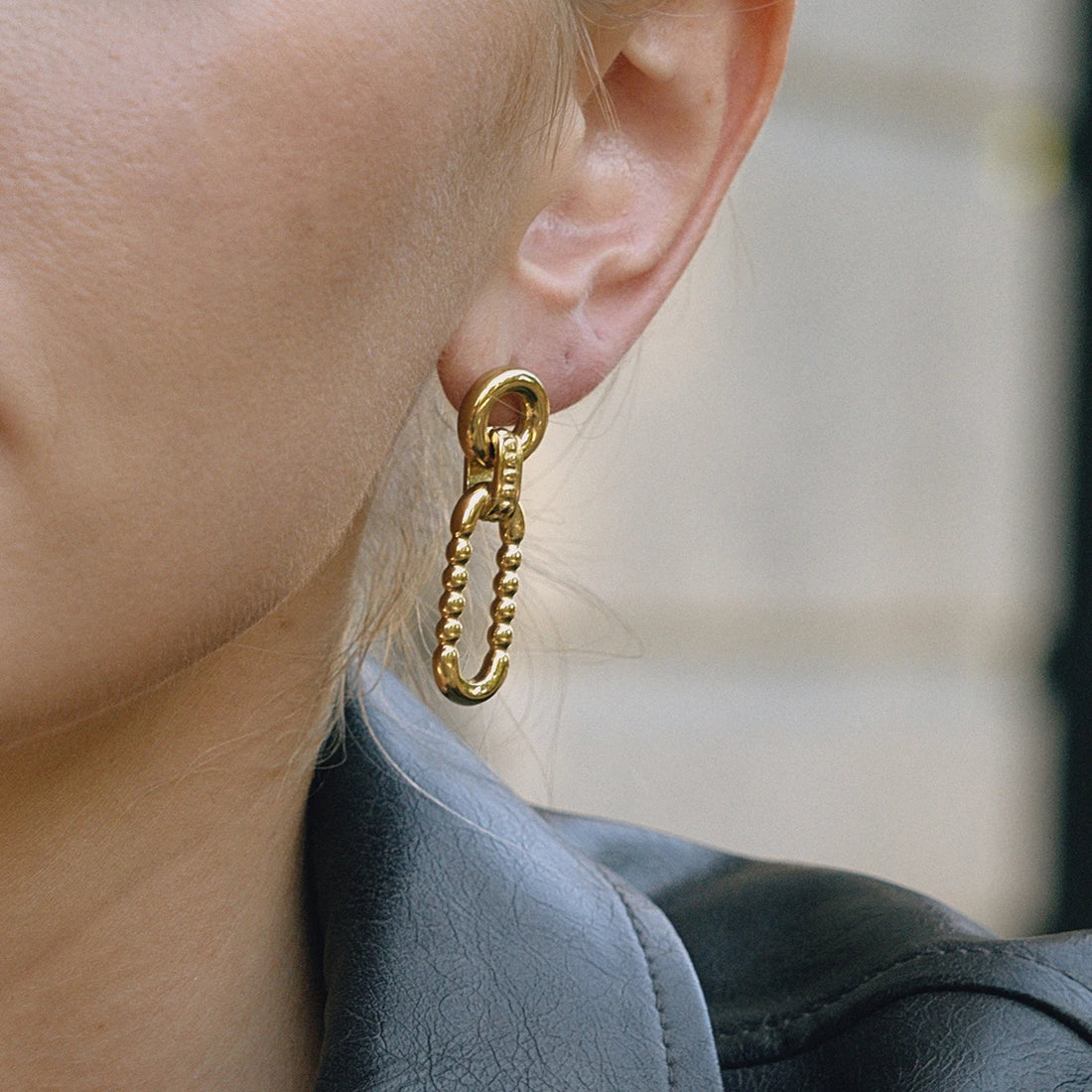 Uworld Vintage 18K Gold Color Plated Stainless Steel Oval O-shaped Irregular Hollow Chain Door Handle Earrings Women's Jewelry