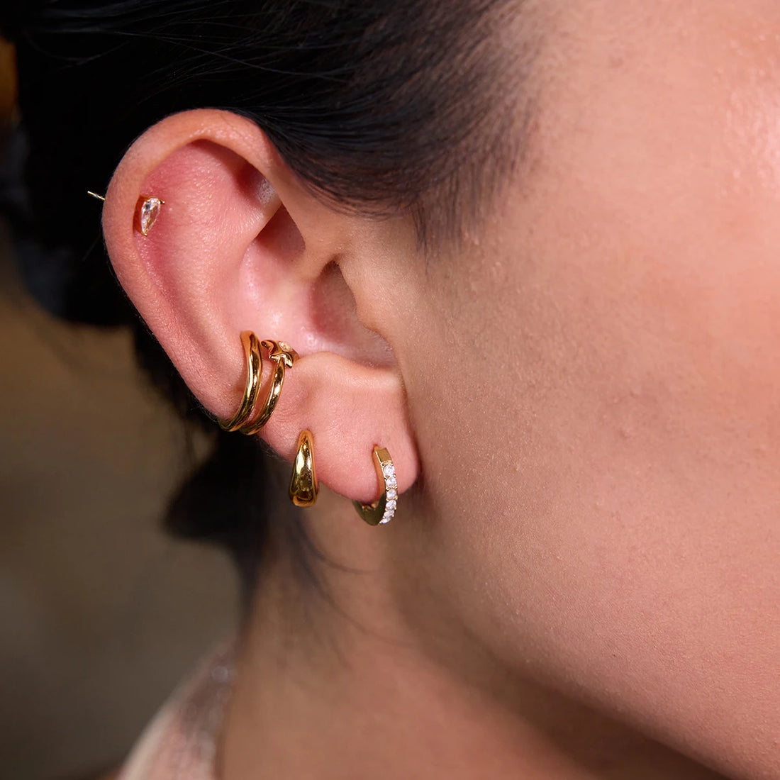 Uworld Fashion Niche Designer Style With Rhinestone Stainless Steel Pentagram Meteor Double-layer Ear Clip Women's Jewelry Party