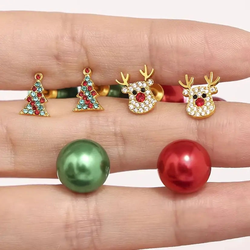 Nivora Christmas Tree Elk Deer Stud Earrings For Women Stainless Steel Bling Cubic Zircon Earrings Fashion Pendientes Jewelry