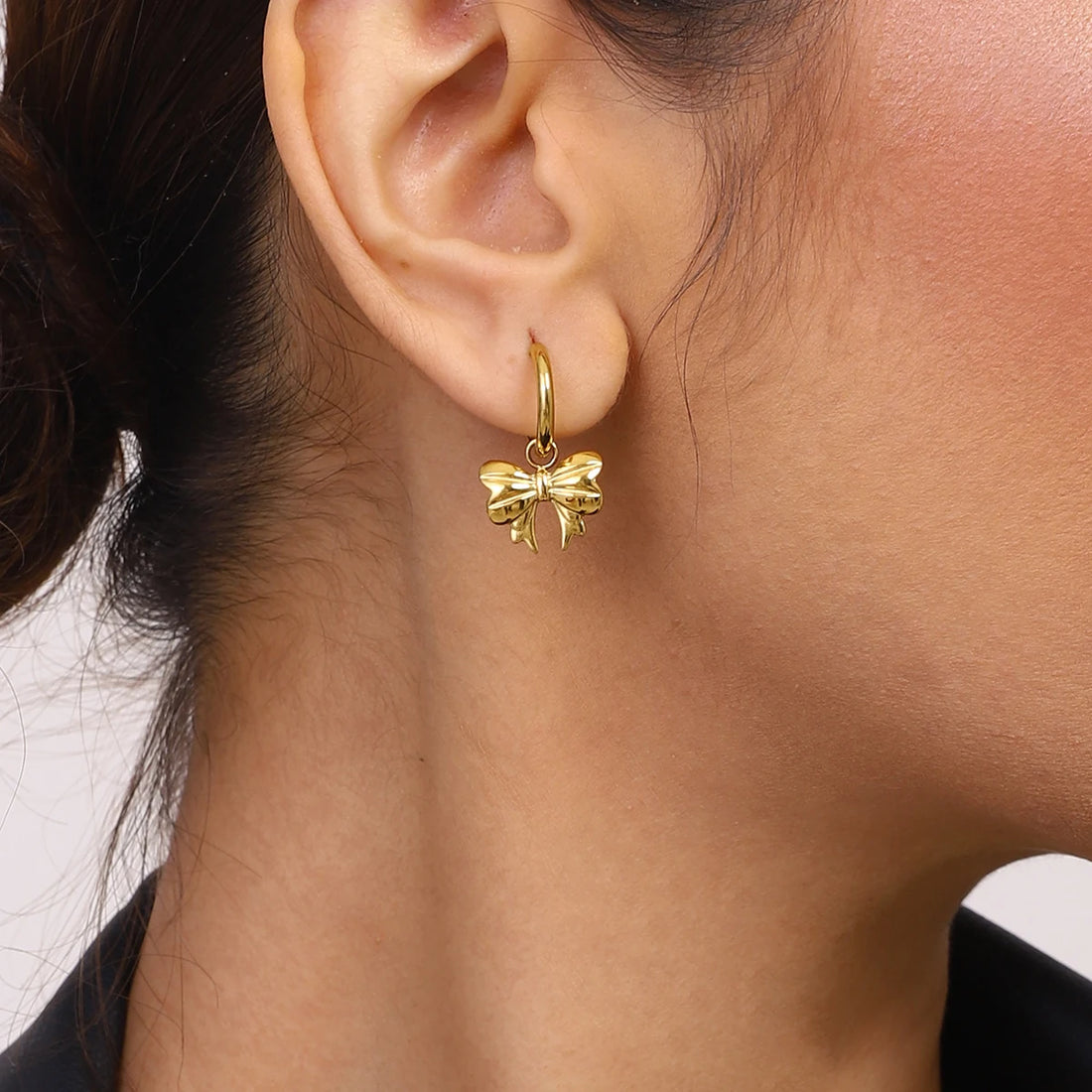 Uworld Chic Bow Tie Pendant Drop Hoop Huggie Earrings 18k Gold Plated Trendy Waterproof Stainless Steel Fashion Charm Jewelry