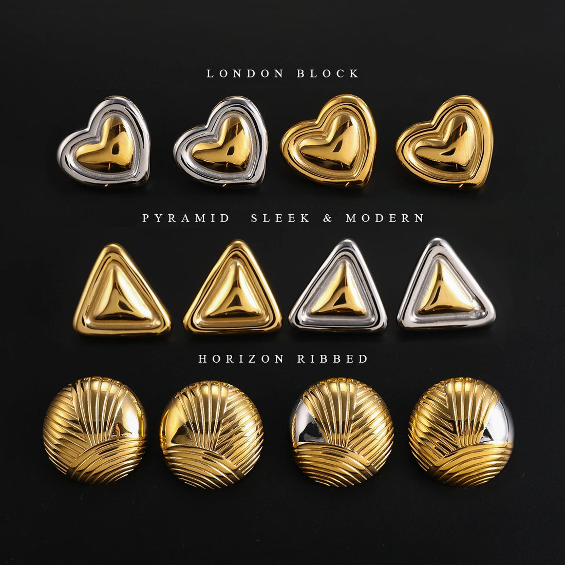Uworld Vintage 18K Gold Color Plated Stainless Steel Horse Eye Geometry Ear Studs Triangular Irregular Earrings Women's Jewelry