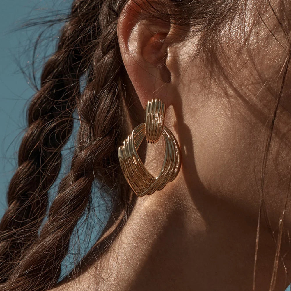 Uworld Minimalist Luxury Style 18K Gold Color Plated Stainless Steel Splicing Fan Shaped Earrings Texture Earrings Women's Jewel