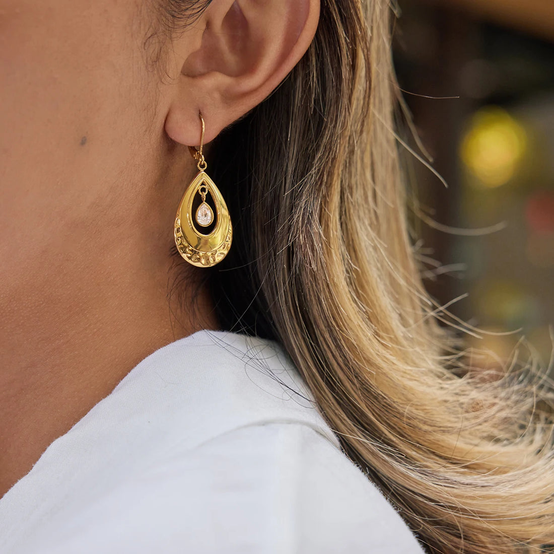 Uworld Classic Gold Color Hollowed-out Drop Earrings With White Zircon Pendants Earring Women 18K PVD Plated Earrings Jewelry