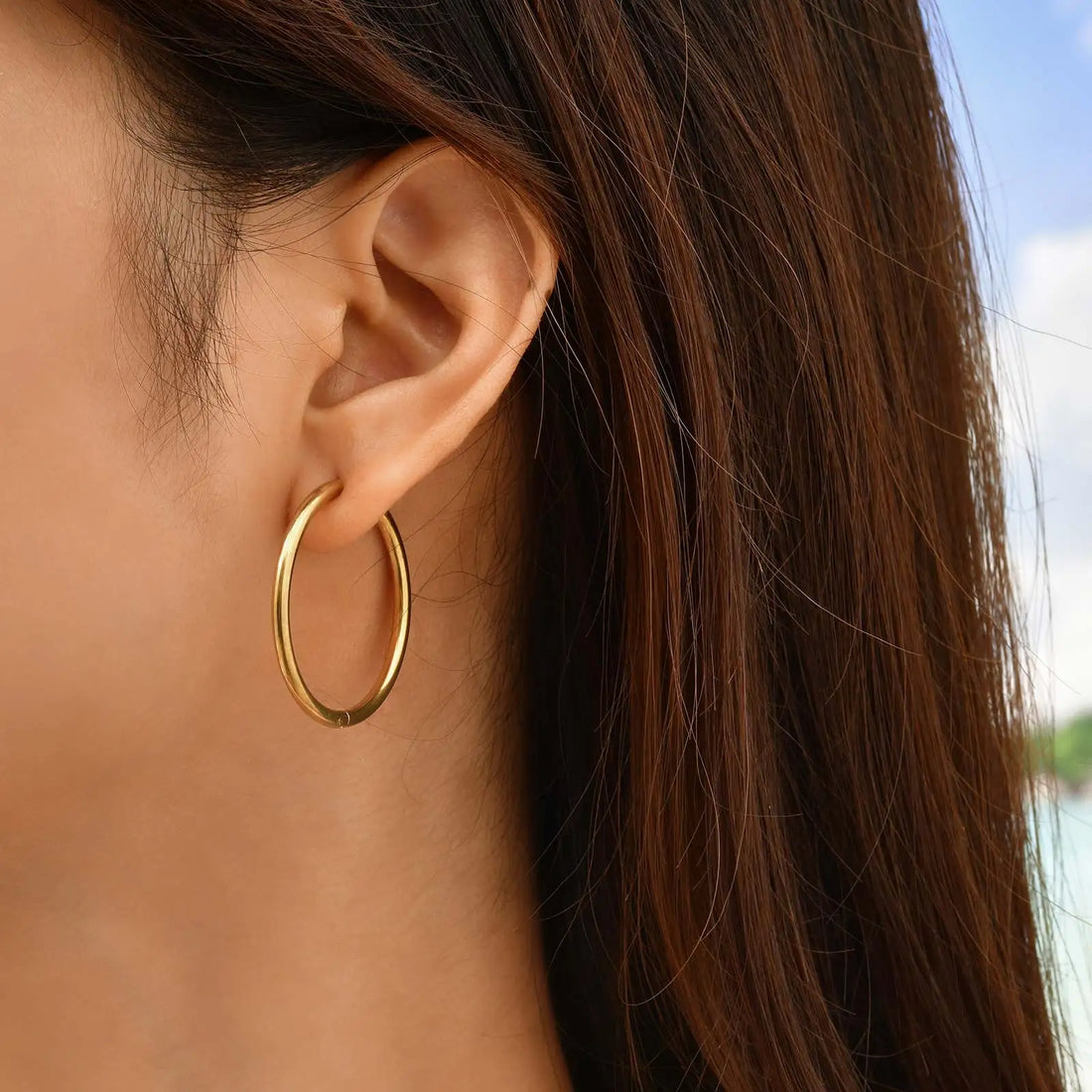 Uworld Classic Cool Fashion Thick Chunky Watchband Small Hoop Earrings 18K PVD Gold Plated Stainless Steel For Woman