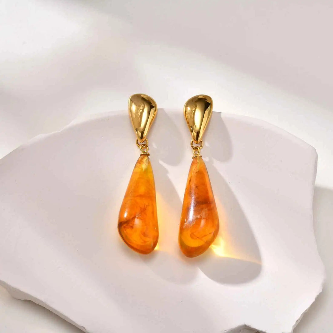 Water Drop Statement Earrings for Women, Resin Amber-colored Teardrop Dangle Earring