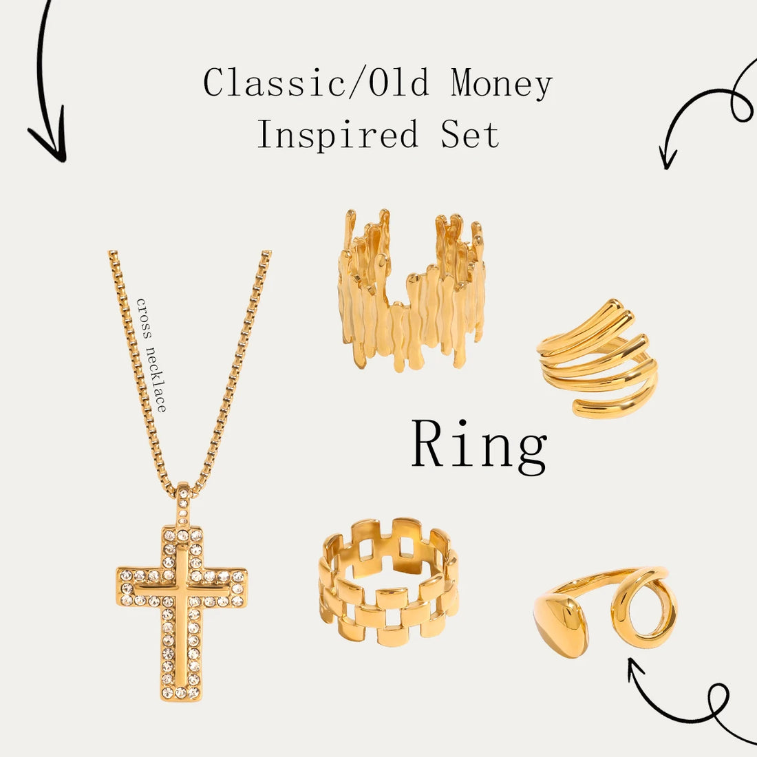 Uworld Fashion 5pcs Stacked Ring Jewelry Set Cross Necklace Linear Ring Women's Jewelry Gift for Her