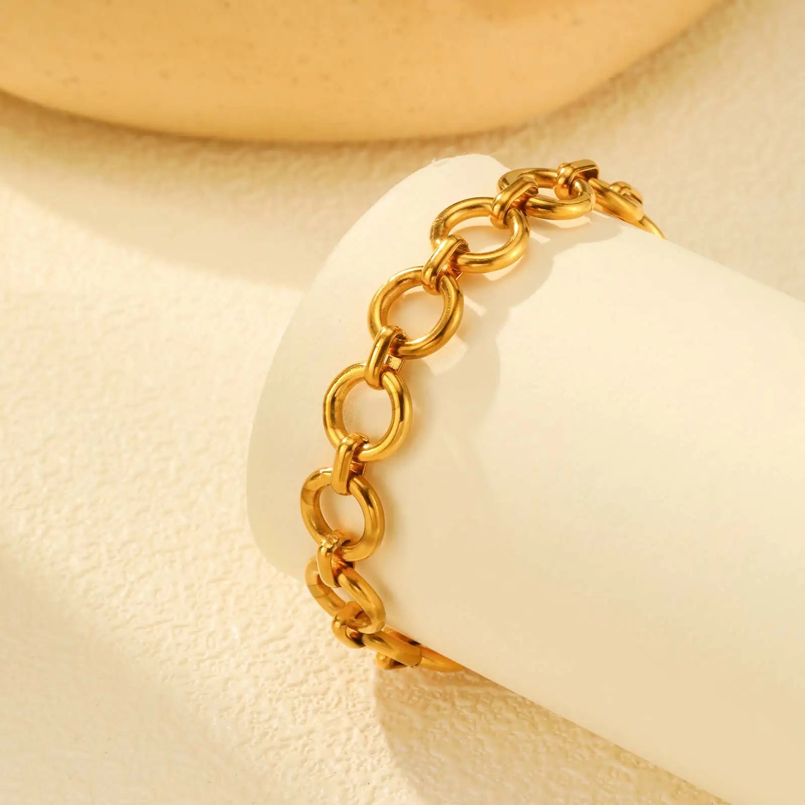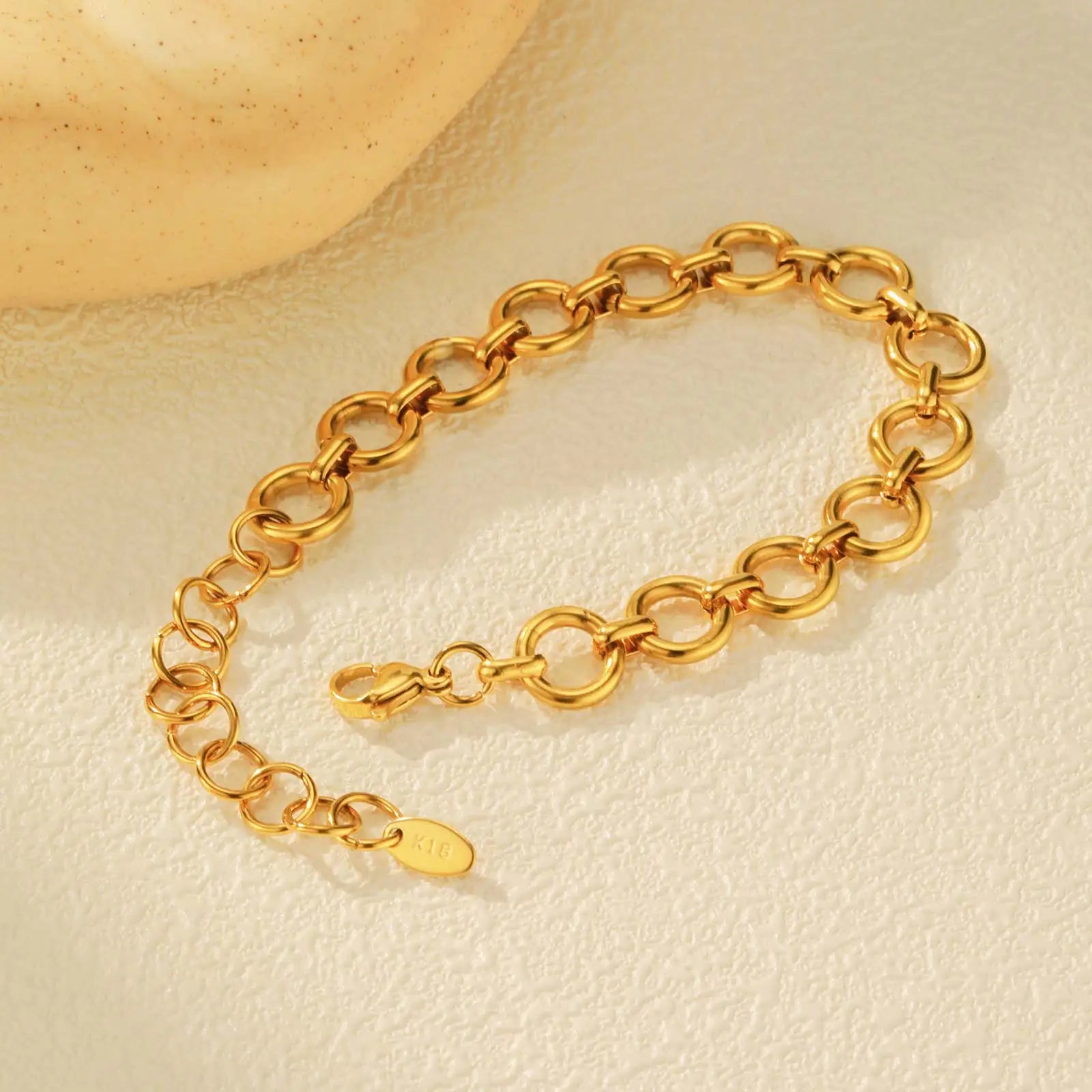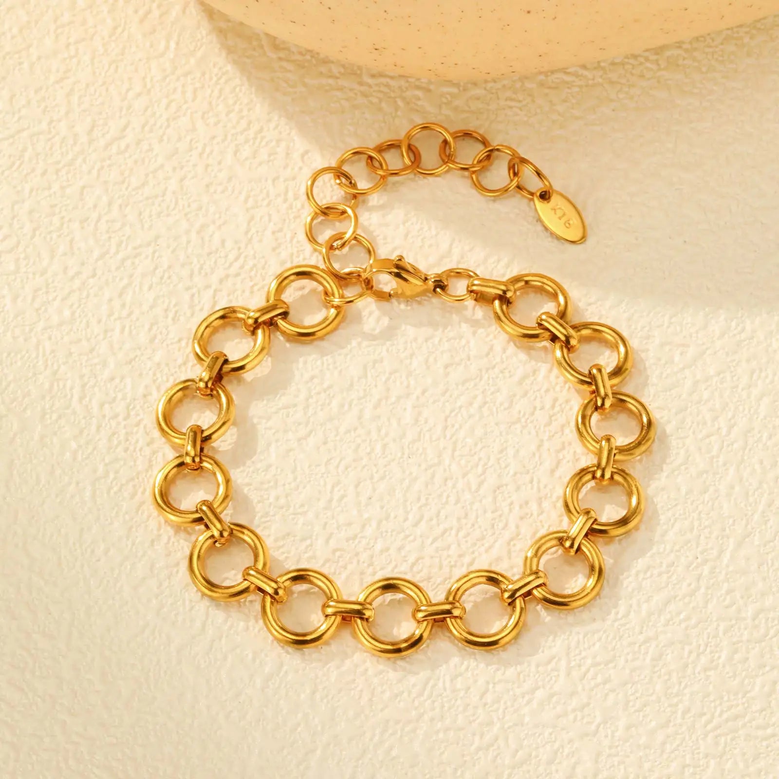 Chic Ring-connected Bracelet for Women,Gold Plated Stainless Steel Chain Bracelets,Fashion Jewelry Gifts