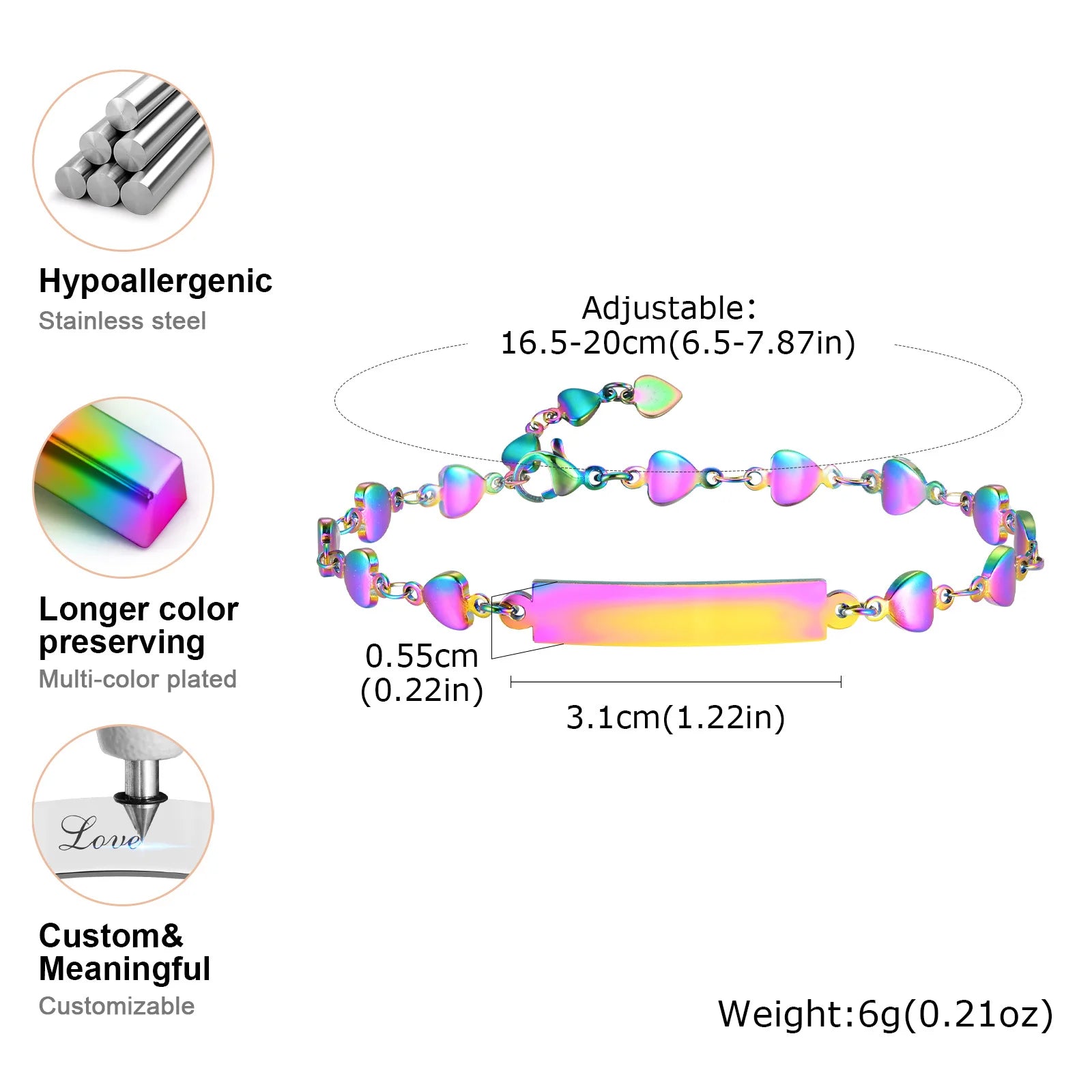 Customized Women's Heart Link Bracelets, Stainless Steel Chain Bracelet, Free Engraved Name Jewelry