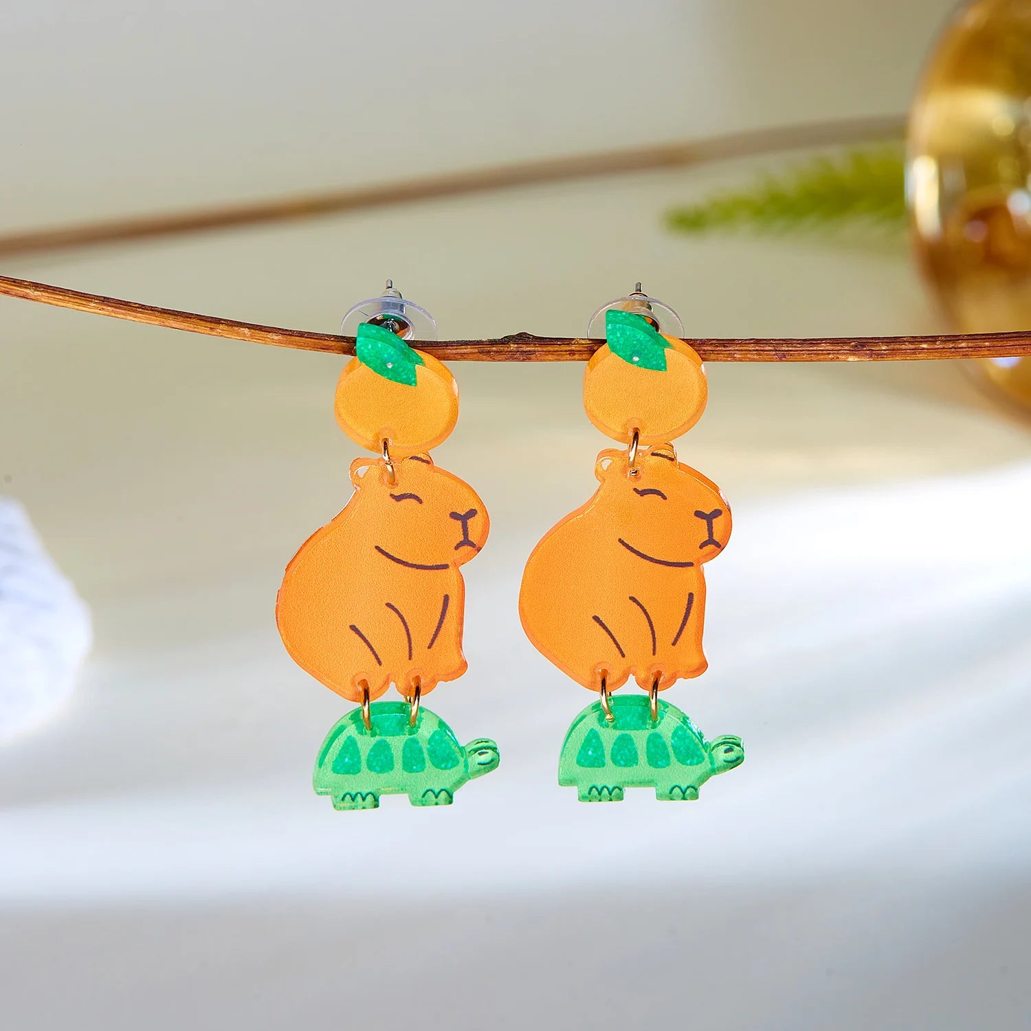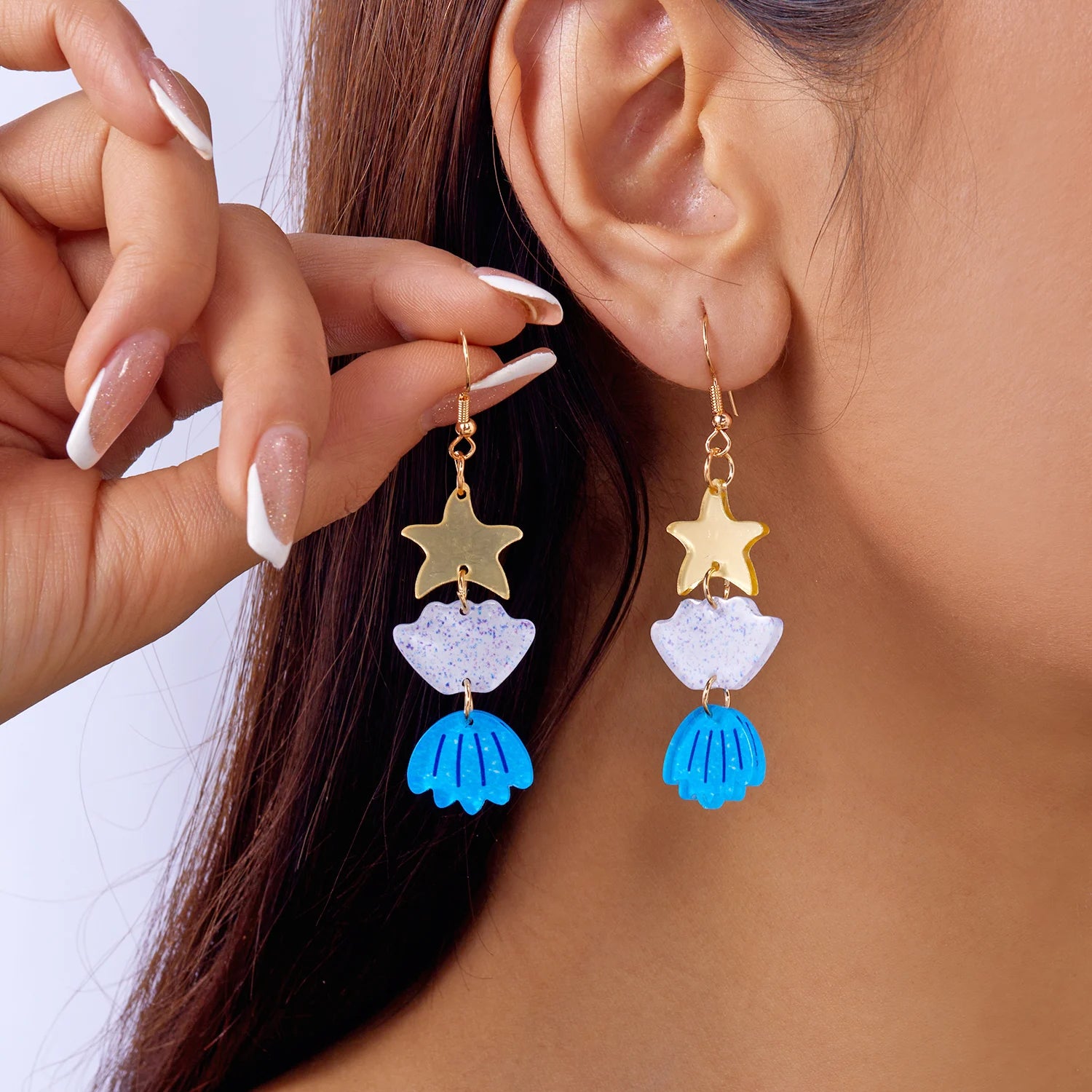 Fashion Acrylic Starfish Shell Pendant Earrings For Women Cute Goldfish Turtle Unique Dangle Earring Party Personality Jewelry