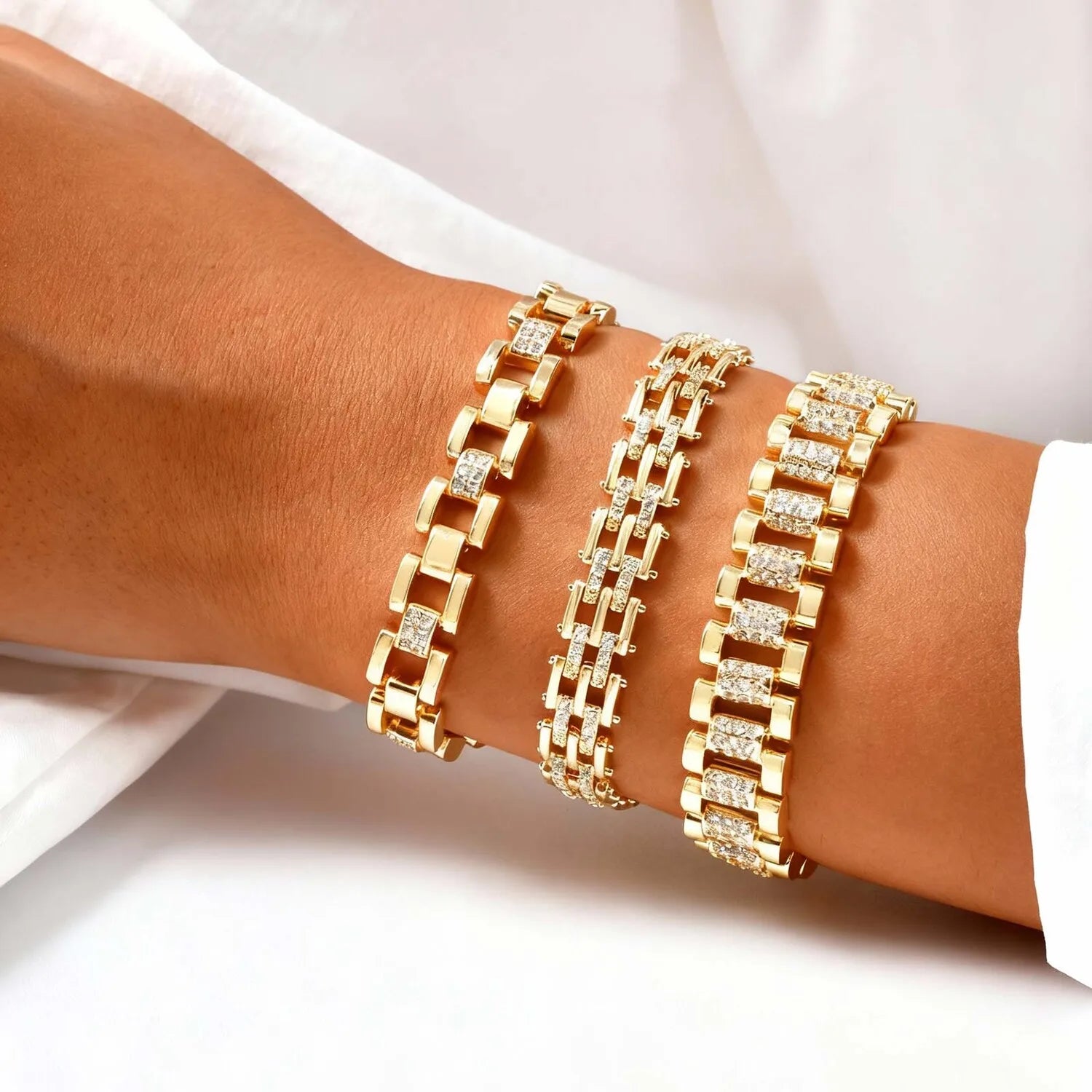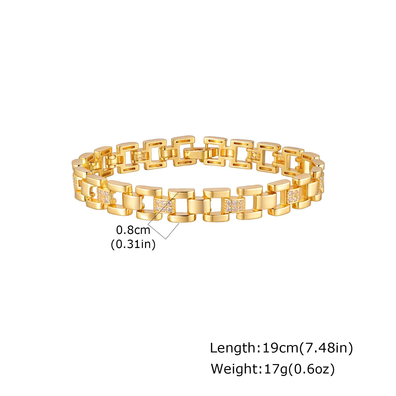 Luxury Chunky Watch Strap Bracelet for Women, Gold Plated Cubic Zirconia Chain Bracelet, Adjustable Stackable Jewelry