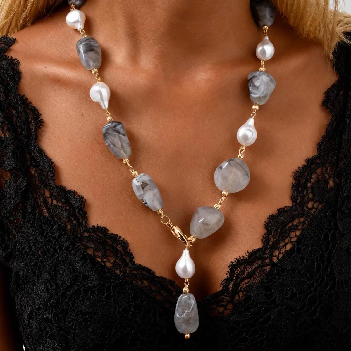 New Exaggerated Irregular Resin Beads Chain Necklace Y-shape Party Charm Jewelry Accessories for Women