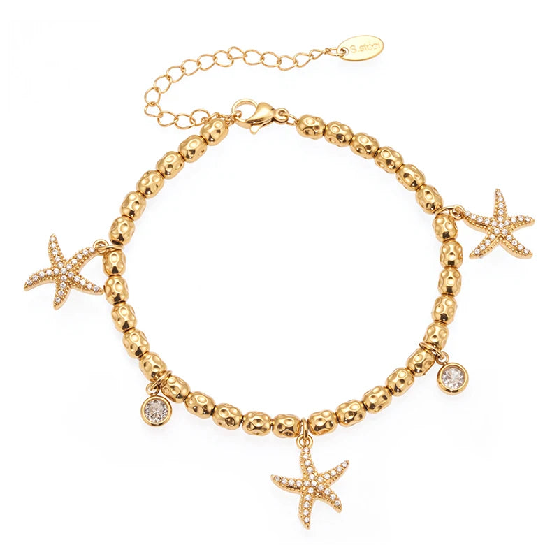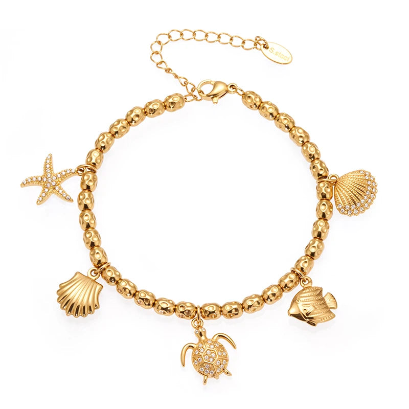 Nivora Distinctive Stainless Steel Metal Texture Chain Bracelets For Women Ocean Style Pendant Charm Wedding Bracelets Jewelry
