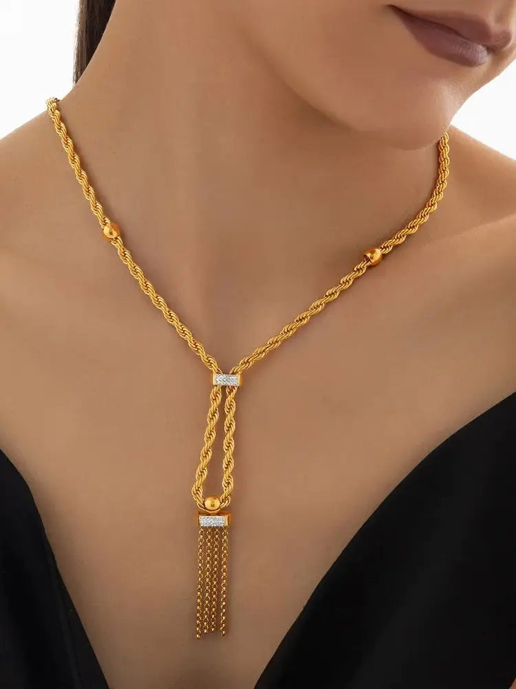 Nivora Fashion Stainless Steel Pendant Neck Choker Long Sweater Box Chain Rhinestone Necklace For Women No Tarnish Jewelry