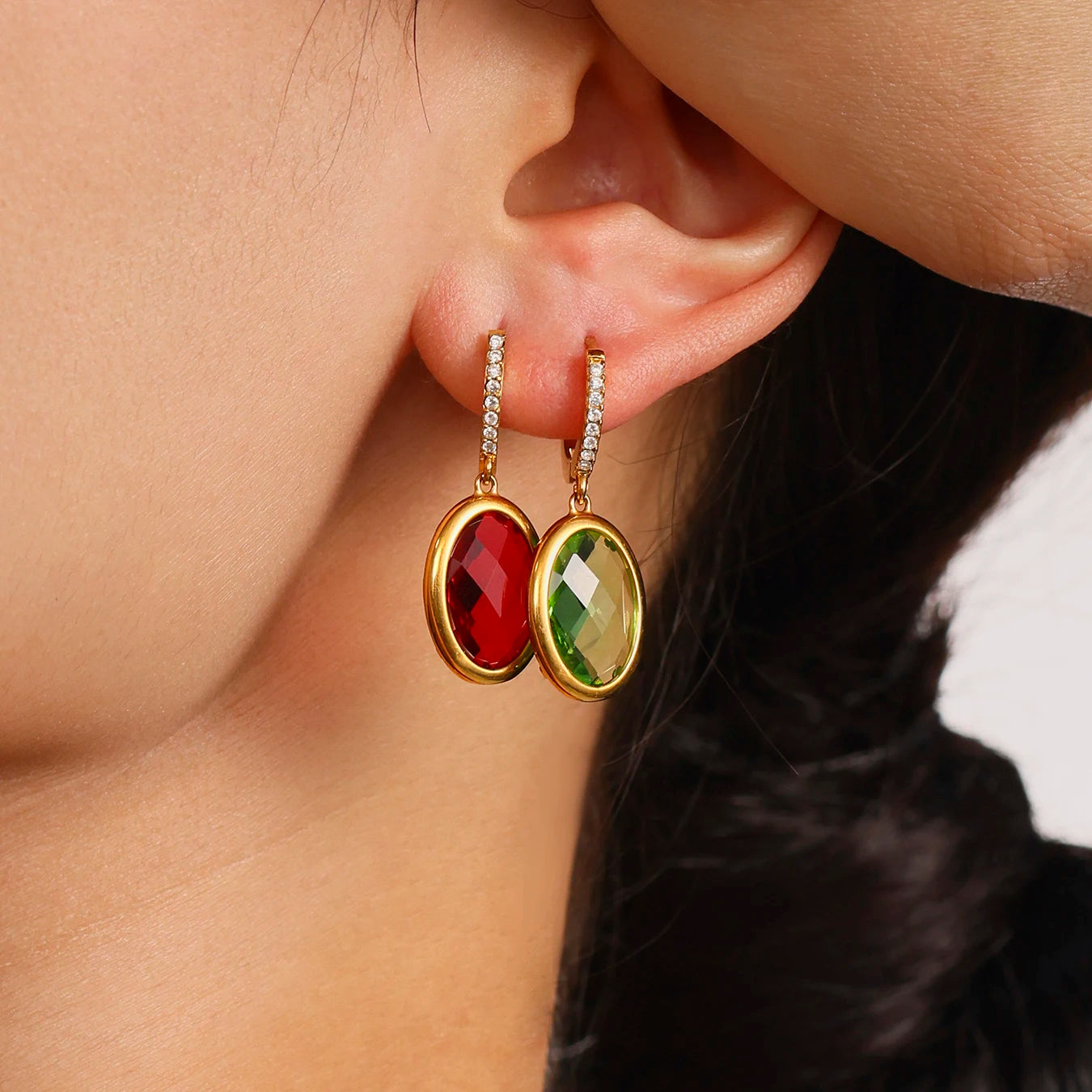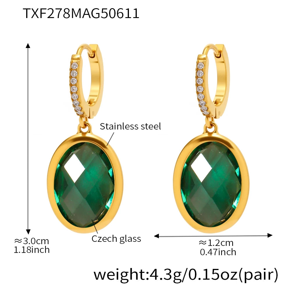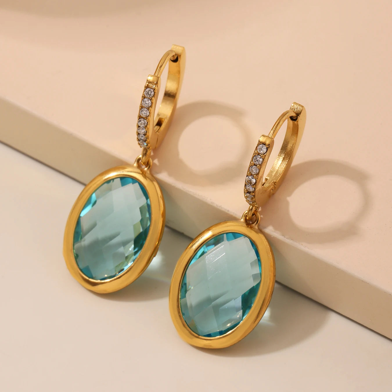 Nivora Shine Oval Glass Drop Earrings For Women Stainless Steel Zircon Hypoallergenic Wedding Engagement Women Earrings Jewelry