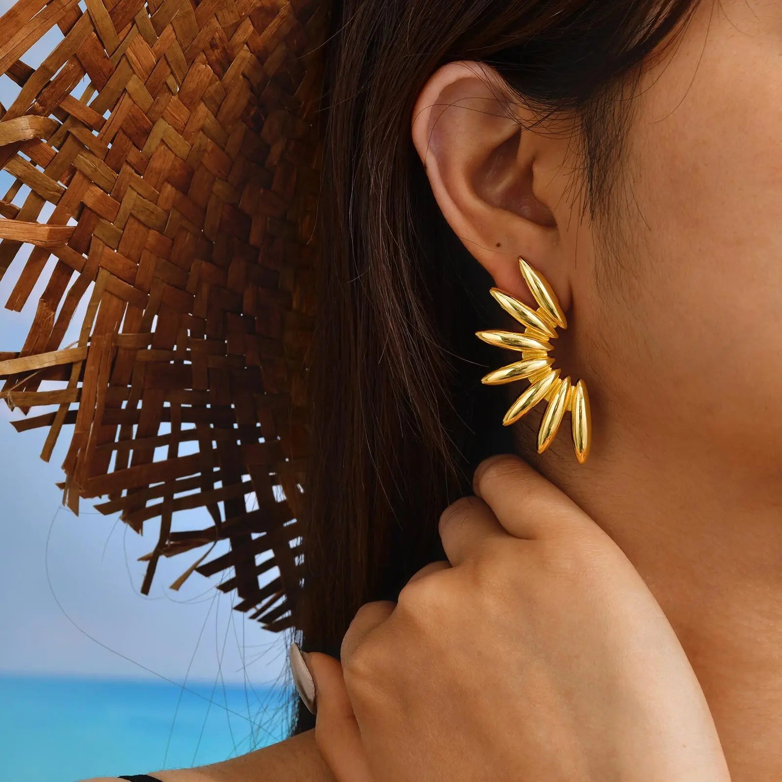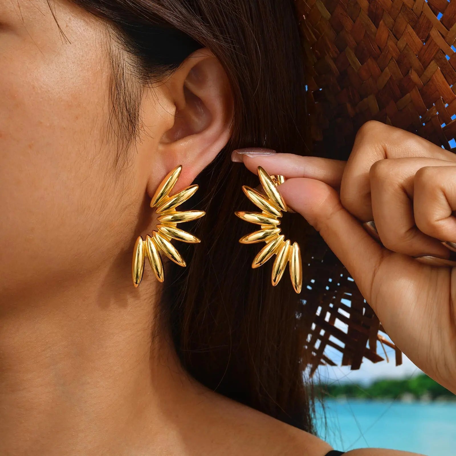 Stainless Steel Geometric Stud Earrings for Women, 18K Plated Prevent Allergy Statement Jewelry Wholesales
