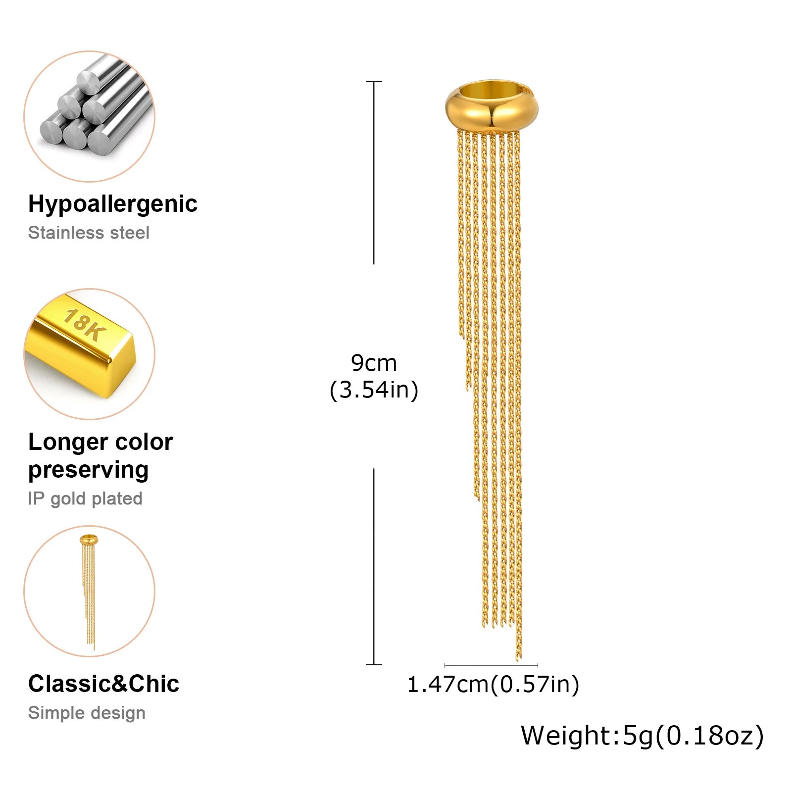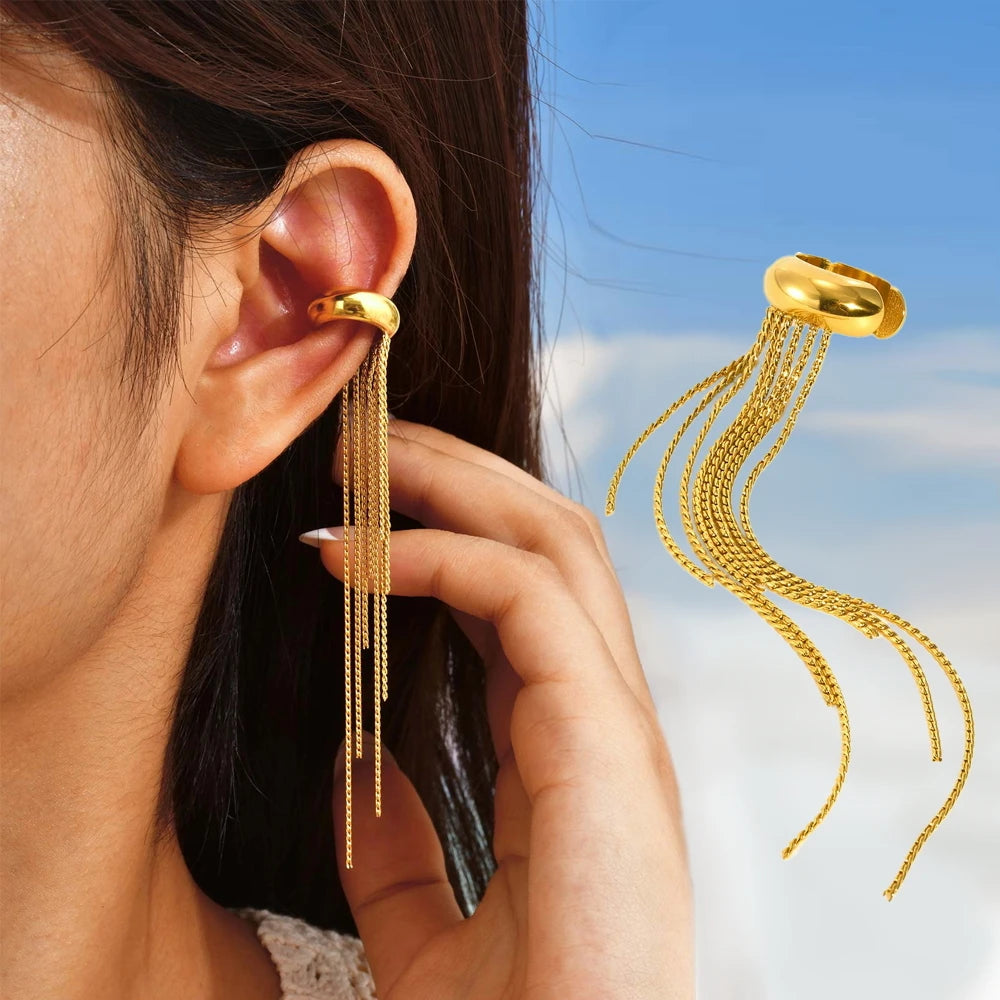 Stainless Steel Tassel Ear Clip for Women, Statement Drop Pendant Ear Bone Clips Waterproof Anti Allergic Jewelry 1Piece