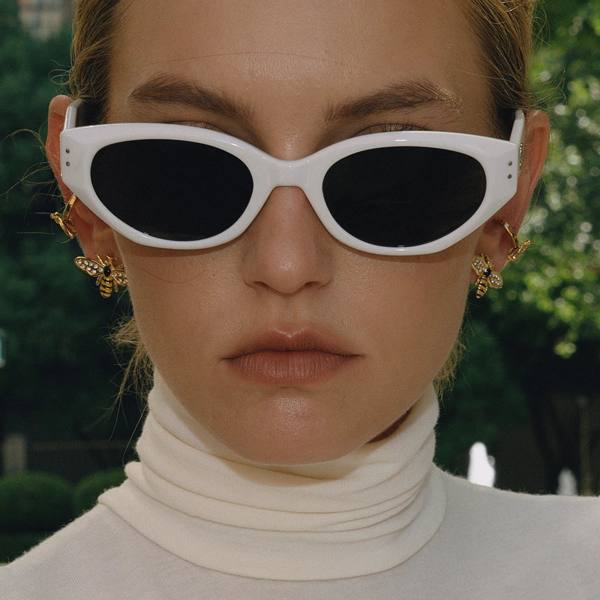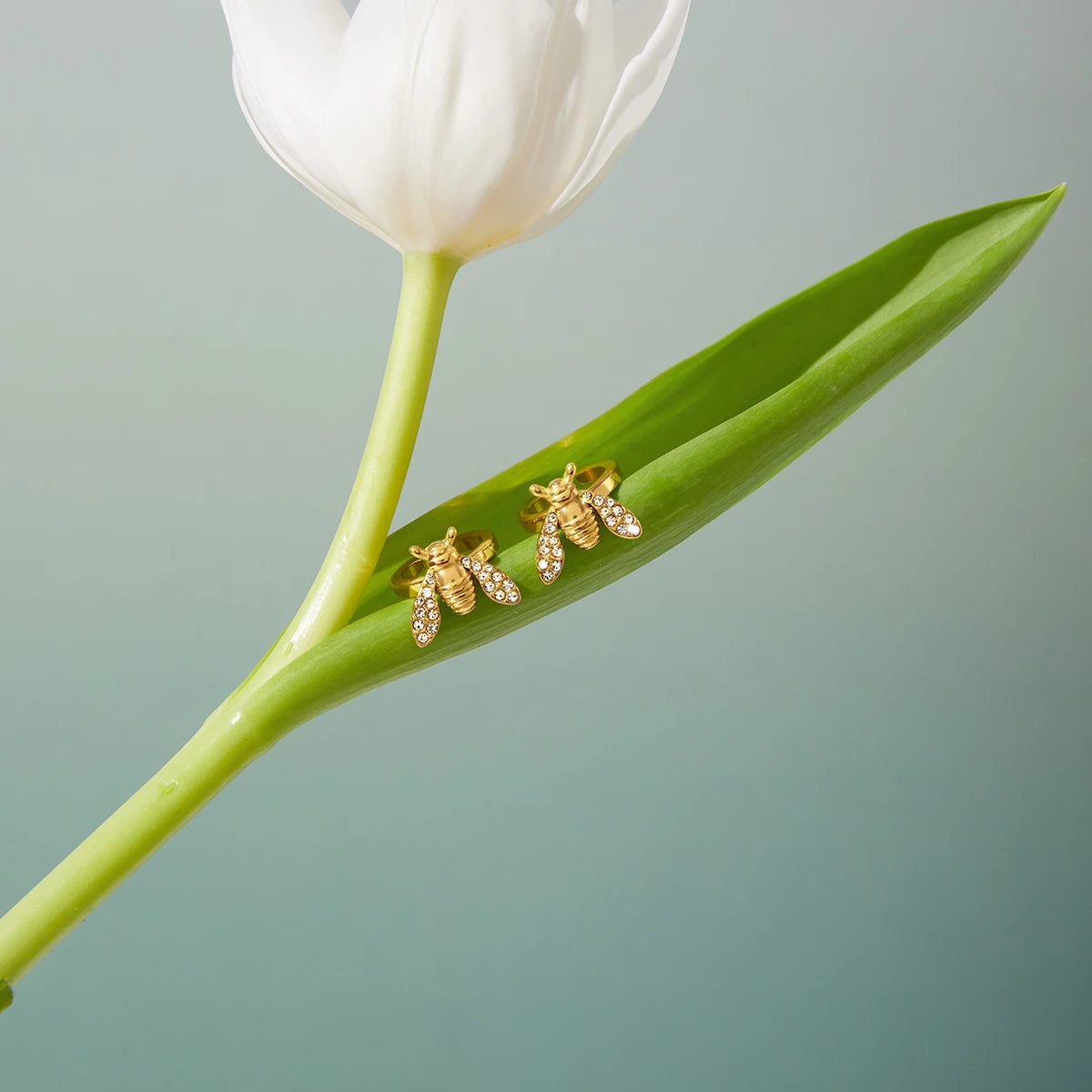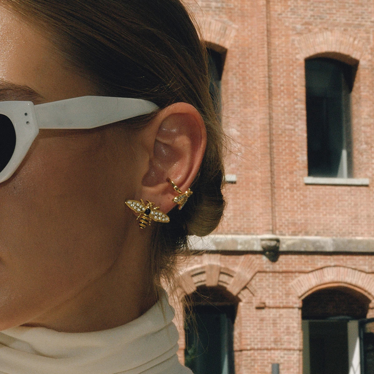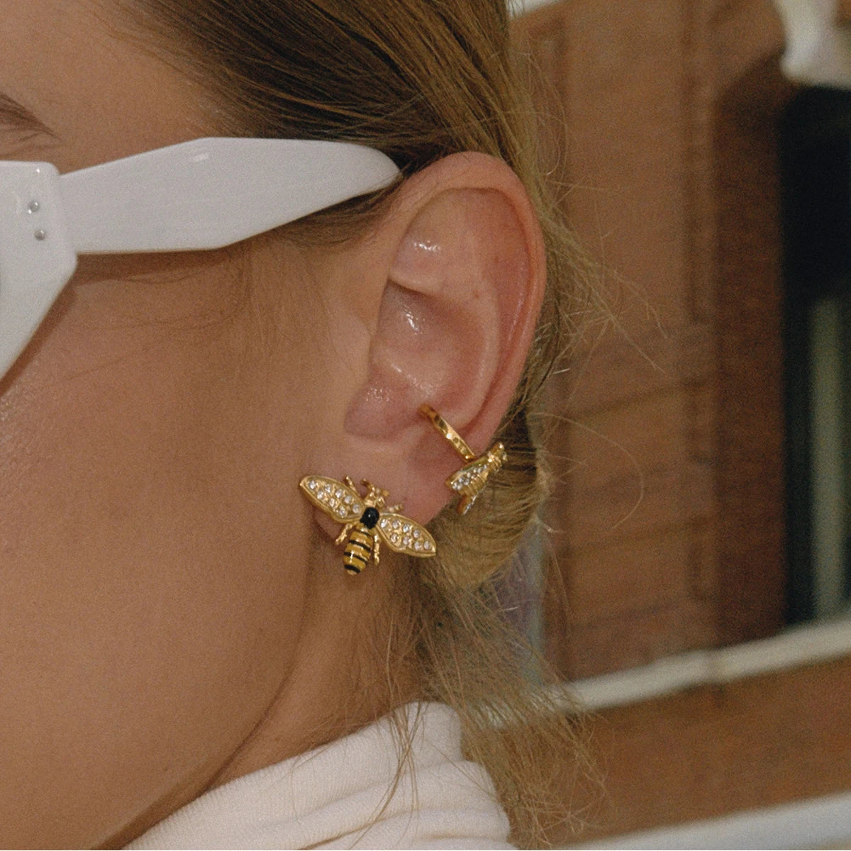 Uworld Classic Fashion 18K Gold Color Plated With White Zircon Bee Ear Clip Hypoallergenic Stainless Steel Women Jewelry Party