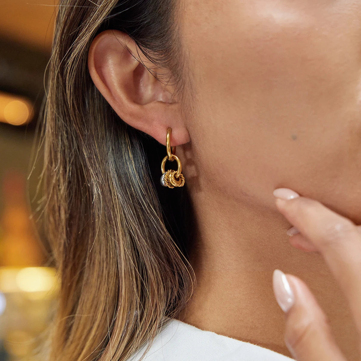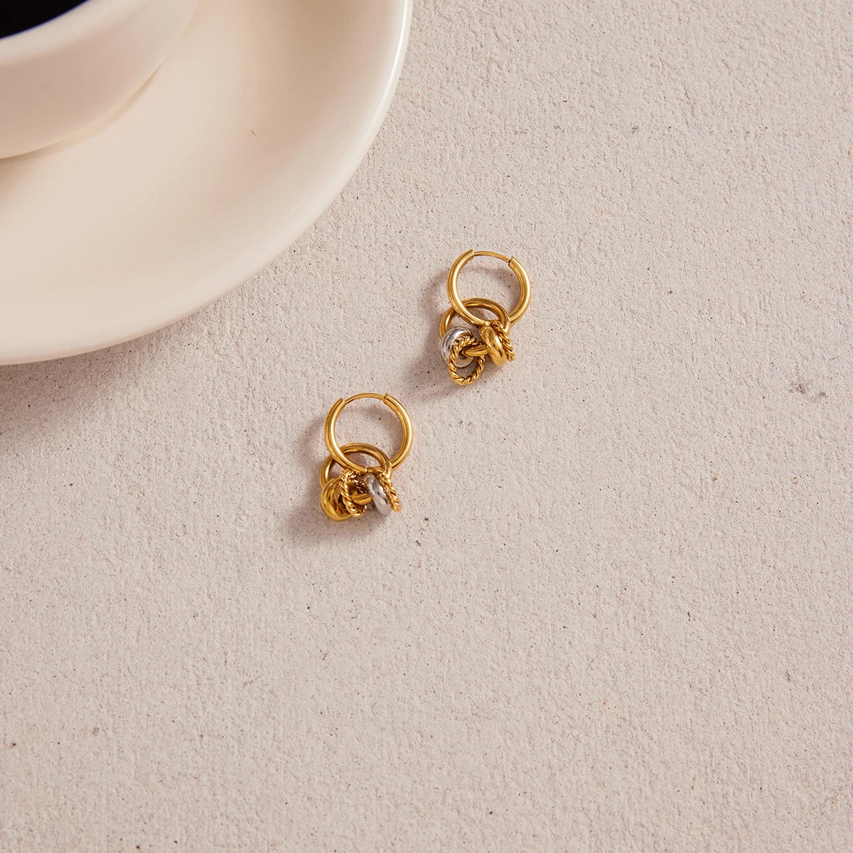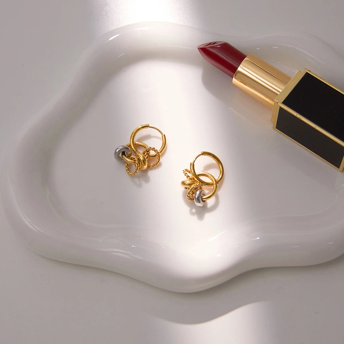 Uworld Classic Gold And Silver Color-block Multi-ring Pendant Earring Women 18K PVD Plated Stainless Steel Earrings Jewelry