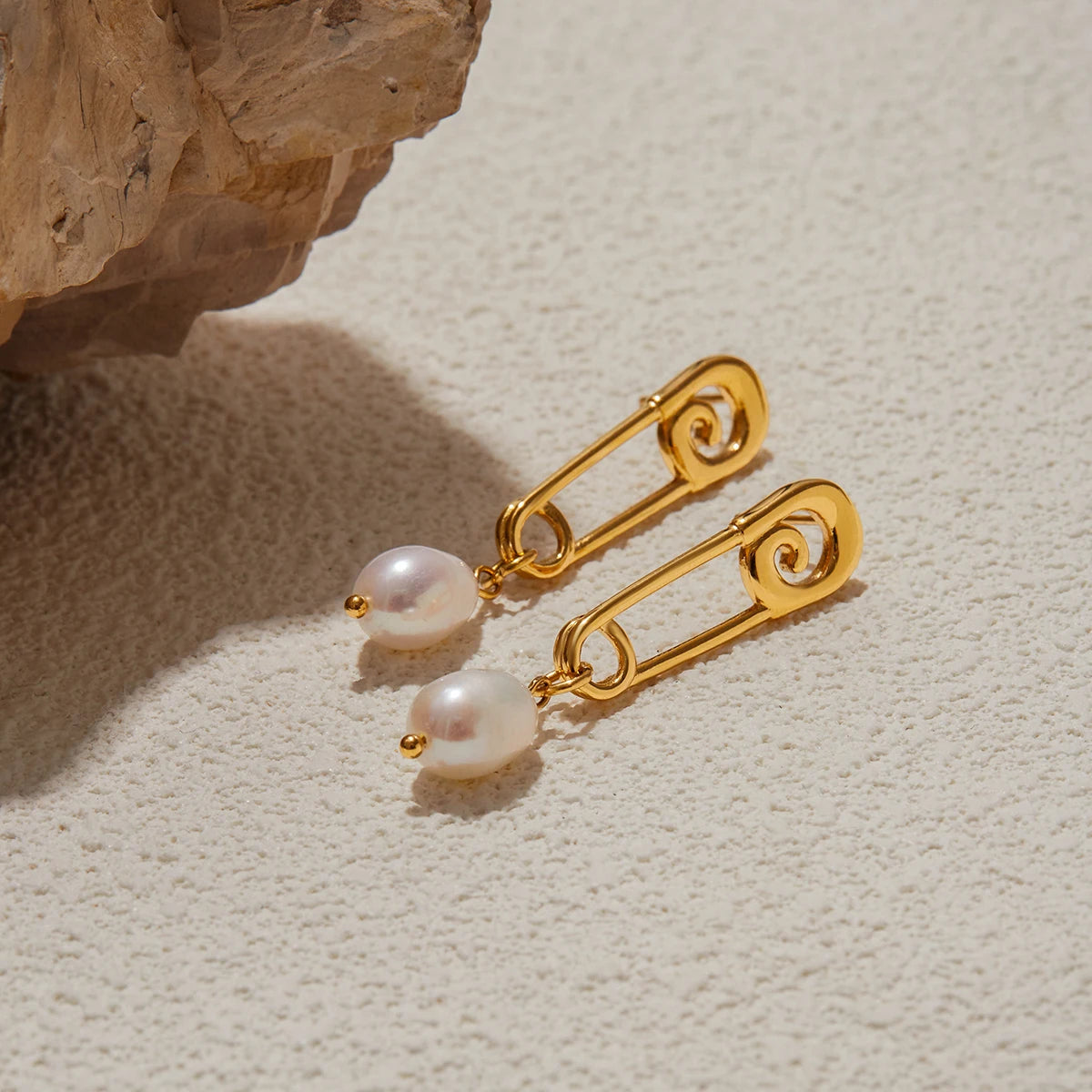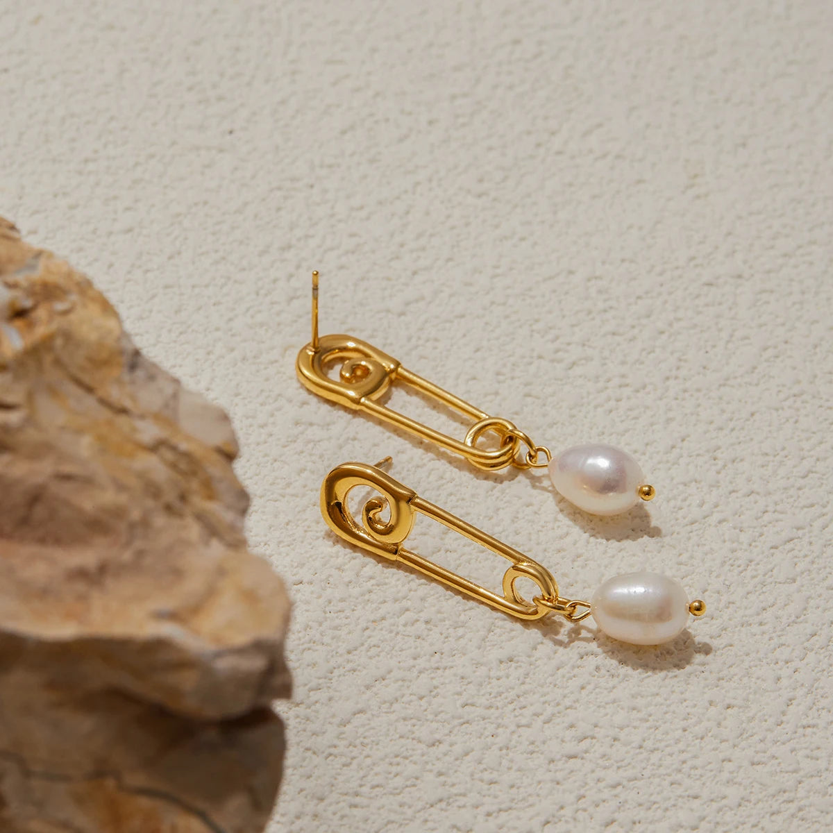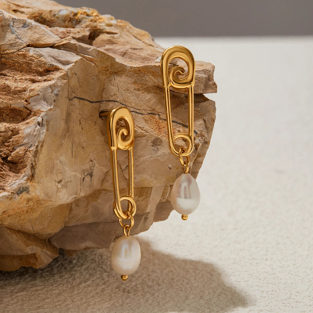 Uworld Niche Designer 18K Gold Color Plated Stainless Steel Paper Clip Freshwater Pearl Pendant Earrings Women's Jewelry Party G