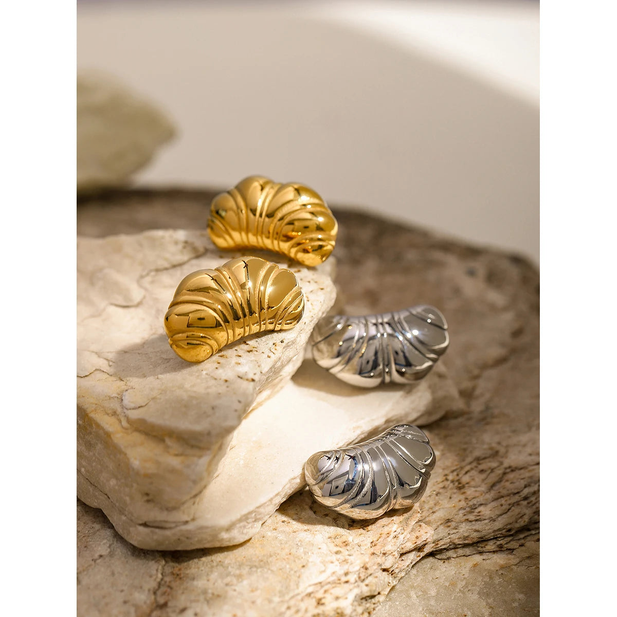 Uworld Waterproof Distinctive Stainless Steel Chic Comfortable Metal Croissant Earrings Geometry Fashion Trendy Jewelry for Wome