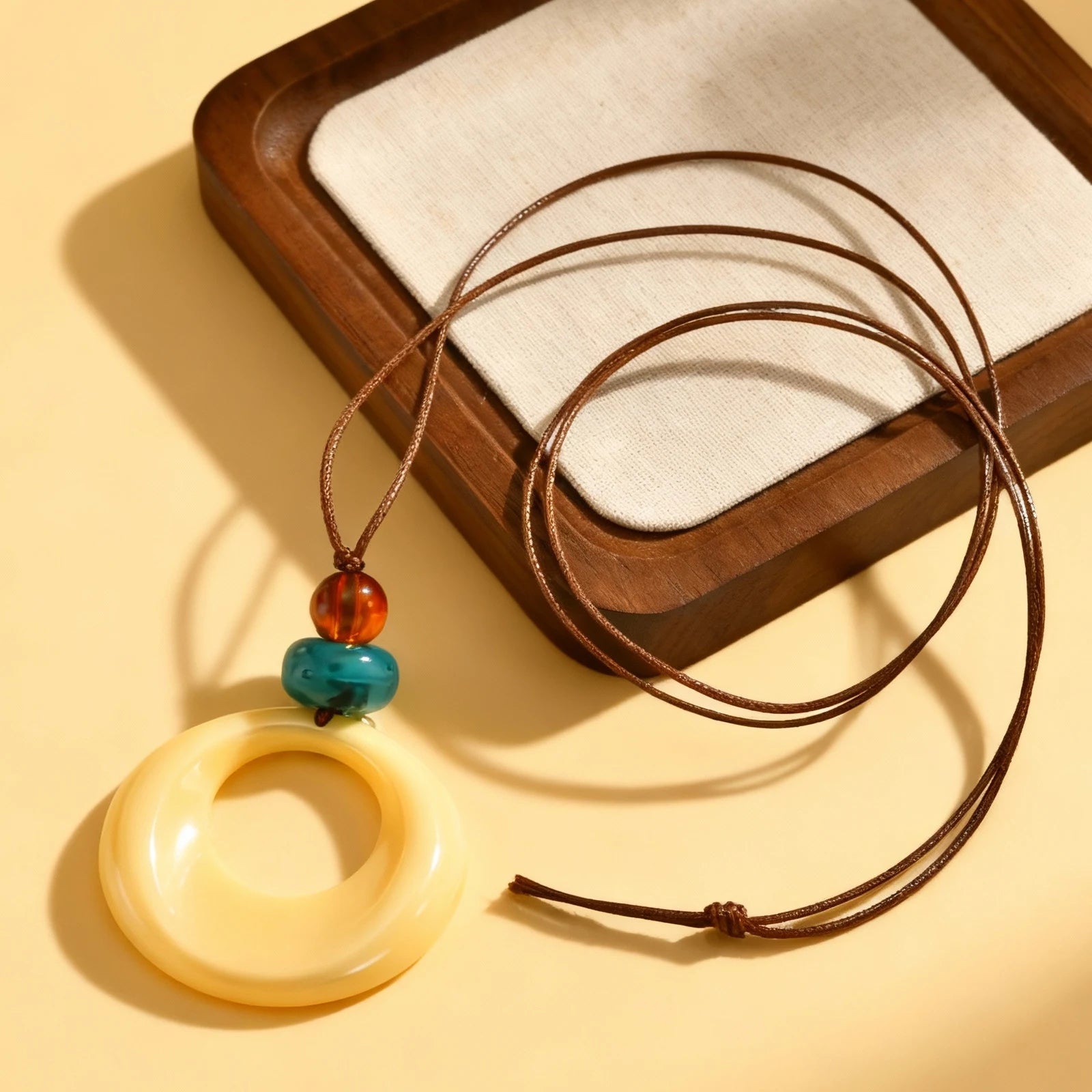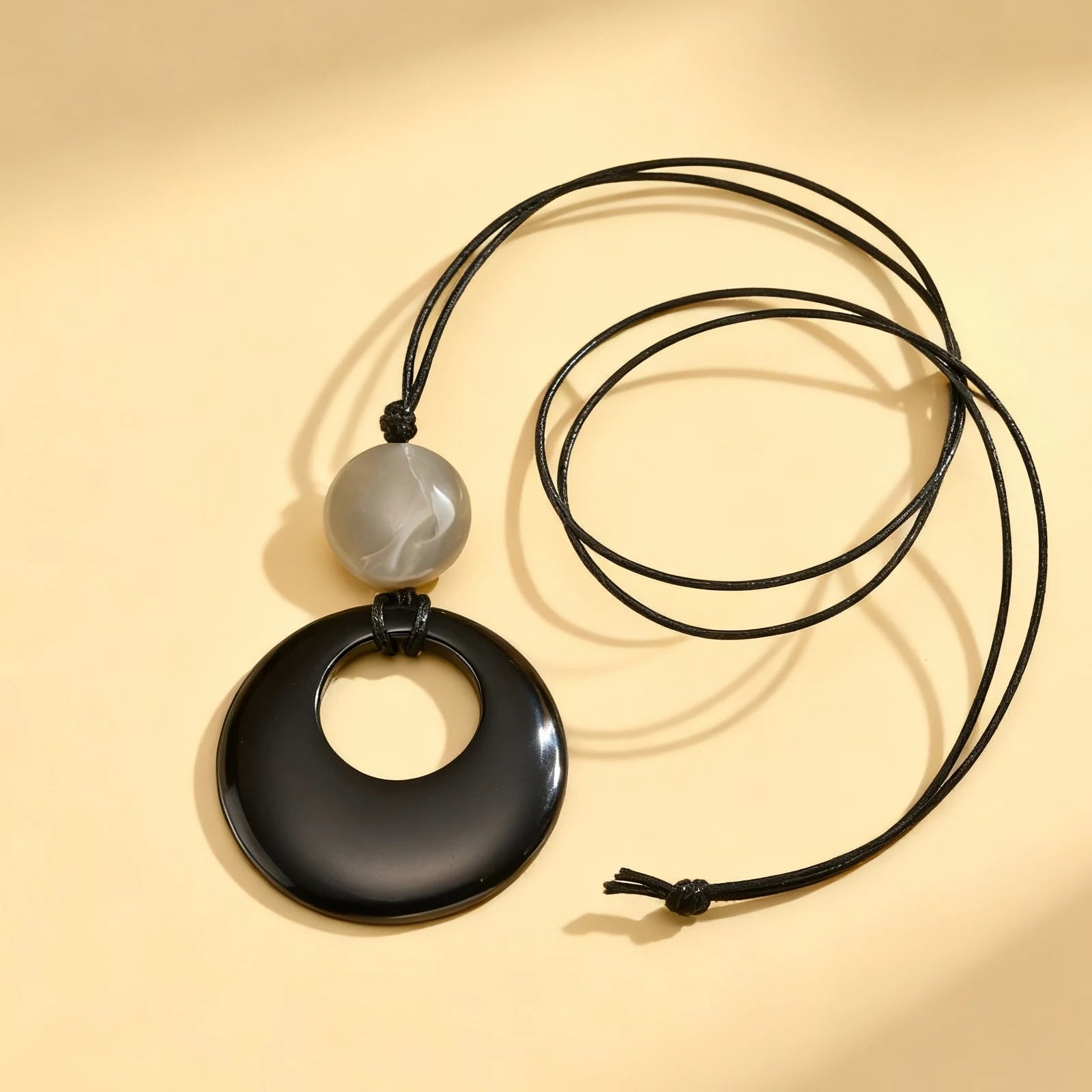 Vintage Amber Resin Geometric Pendant for Women,Ball Hollow U-Ring Wax Chain Rope Necklaces,Simple Charm Sweater Jewelry Gifts